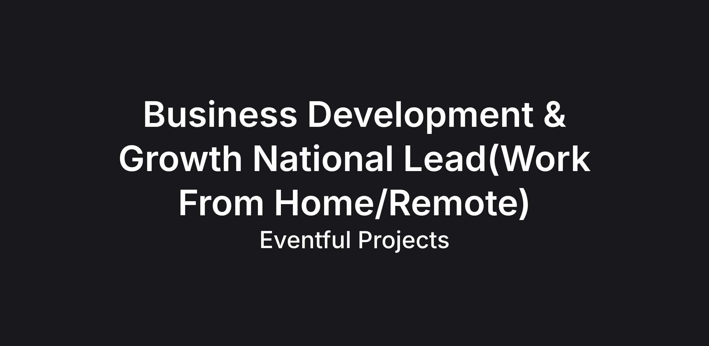 Eventful Projects is seeking a commercially minded Business Development & Growth National Lead to work directly with founder Vicky Troptsidis to drive new business opportunities and support revenue growth.