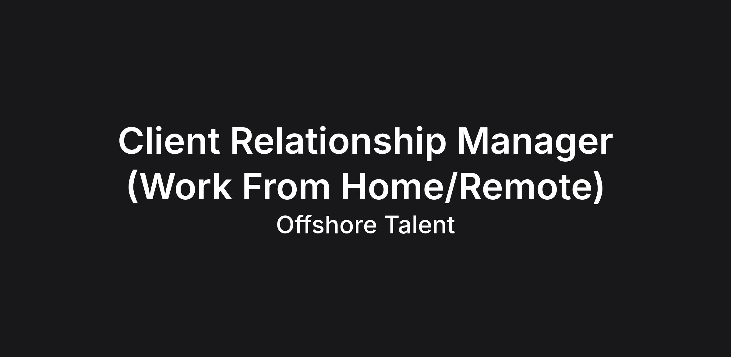 Client Relationship Manager (Fully Remote | AEST Hours)