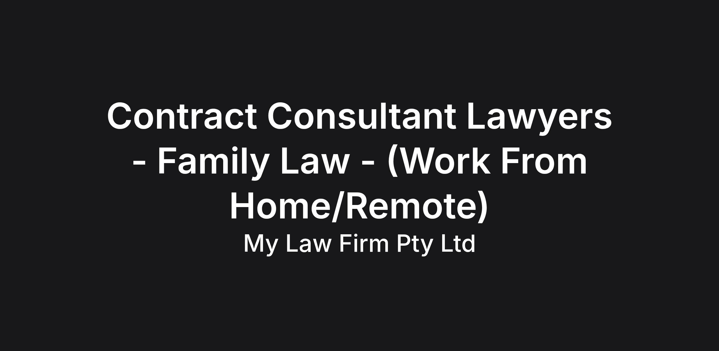 There is an opportunity now to expand the my law firm contract lawyer consultant base, and I am looking for a couple of experienced Family Law specialists to handle the large volume of binding financial agreement (drafting and review) work we undertake on a fixed fee basis.