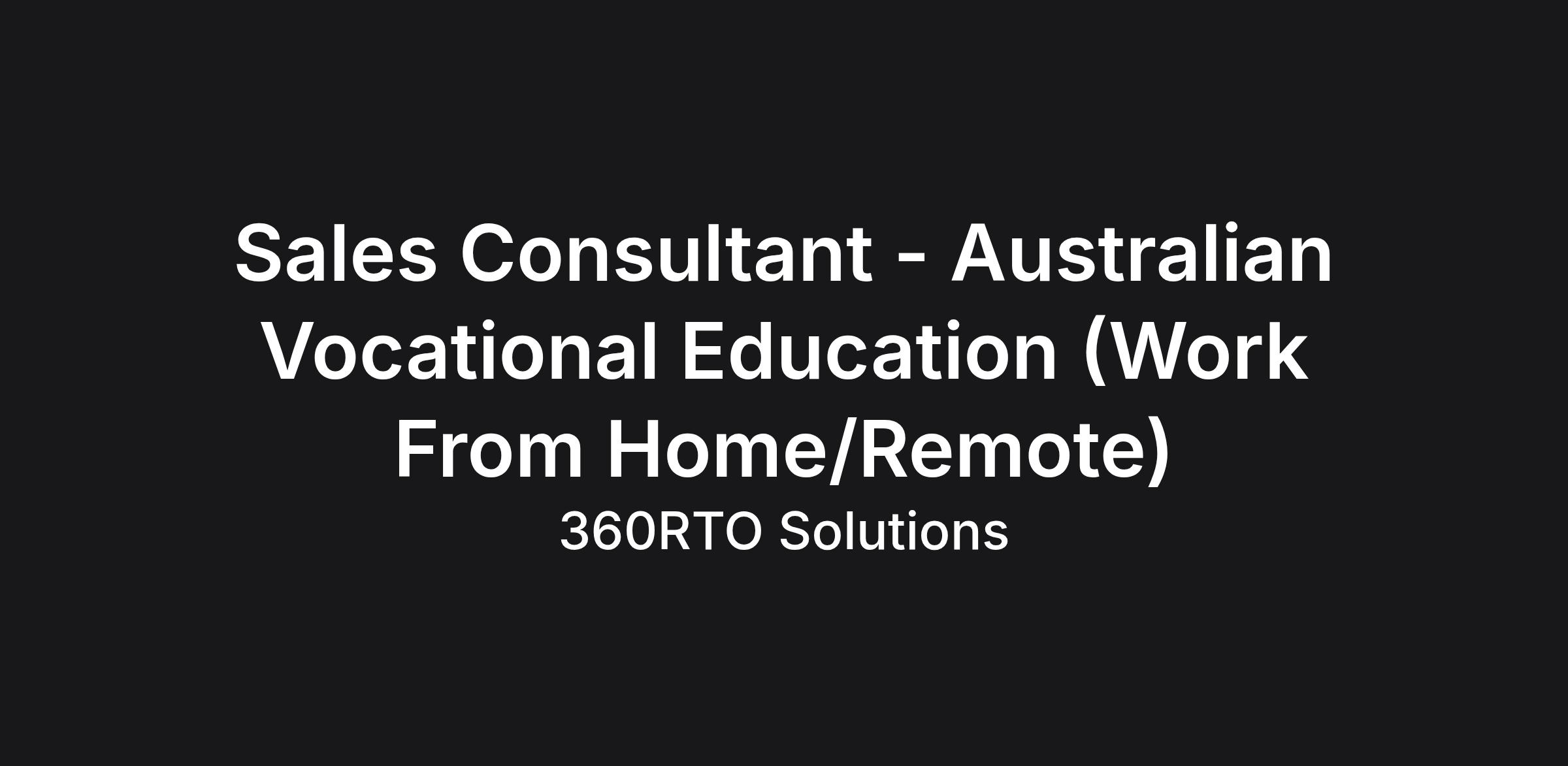 Sales Consultant - Australian Vocational Education (RTO Sector)