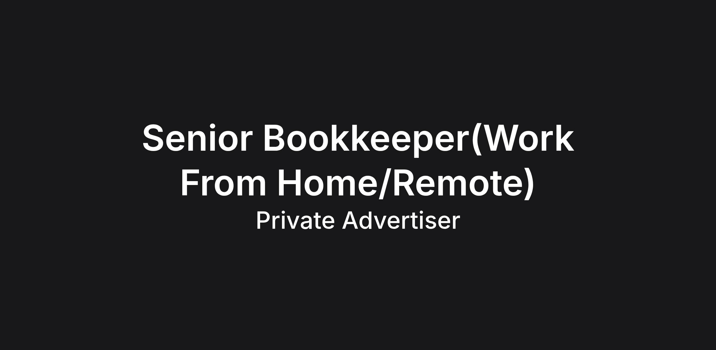 Job Opportunity: Senior Bookkeeper