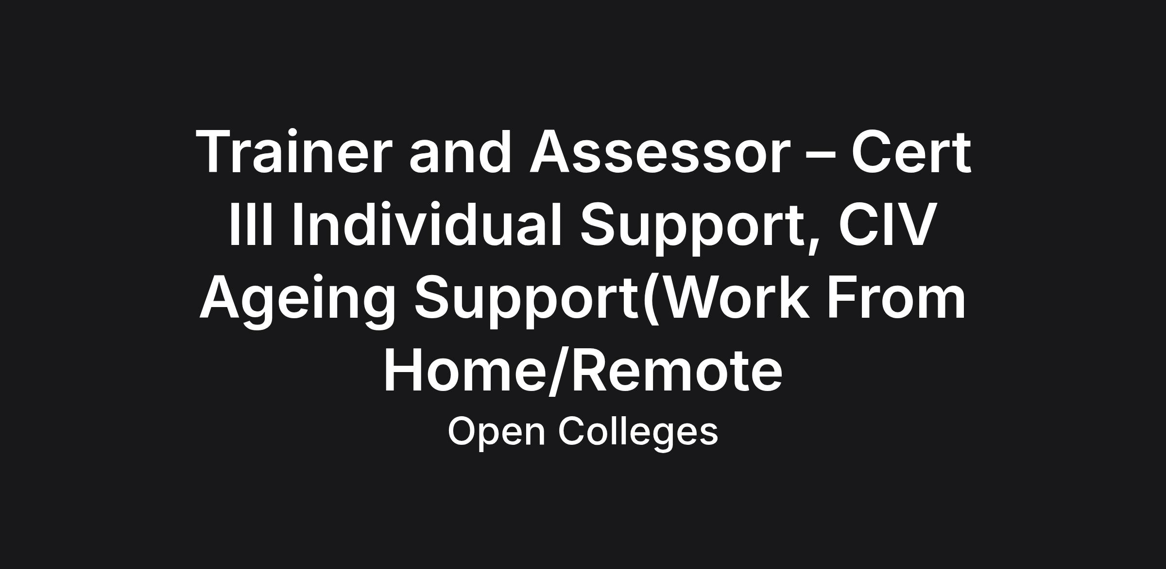 · CHC43015 Certificate IV in Ageing Support